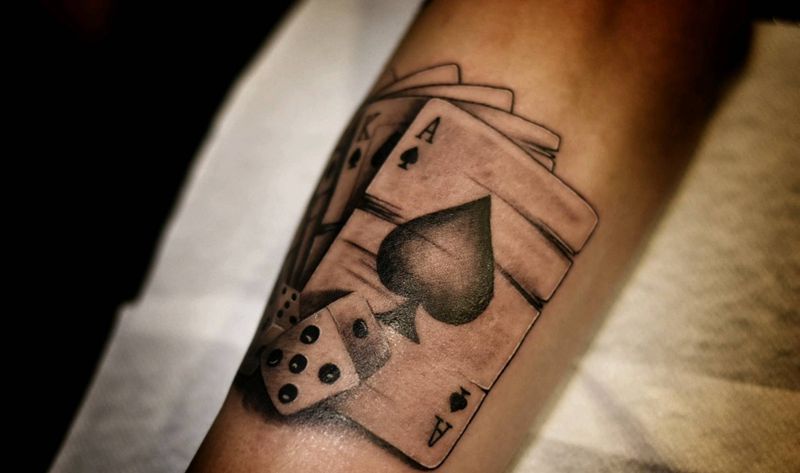 扑克与骰子纹身图片_手部欧美写实纹身图案