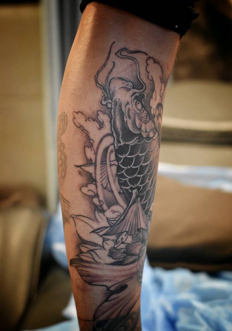 当前位置: 首页 >广东省广州市纹身店-ReAL-TATTOO(番禺店)纹身图案>传统鲤鱼纹身图片_脚部新传统纹身图案