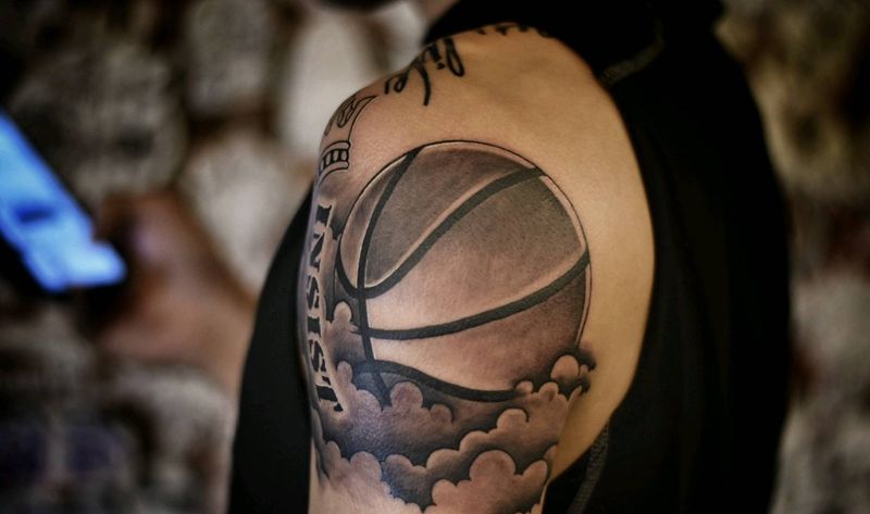 当前位置: 首页 >广东省广州市纹身店-ReAL-TATTOO(番禺店)纹身图案>带点奇卡风格的篮球纹身图片_手臂欧美写实Old School纹身图案