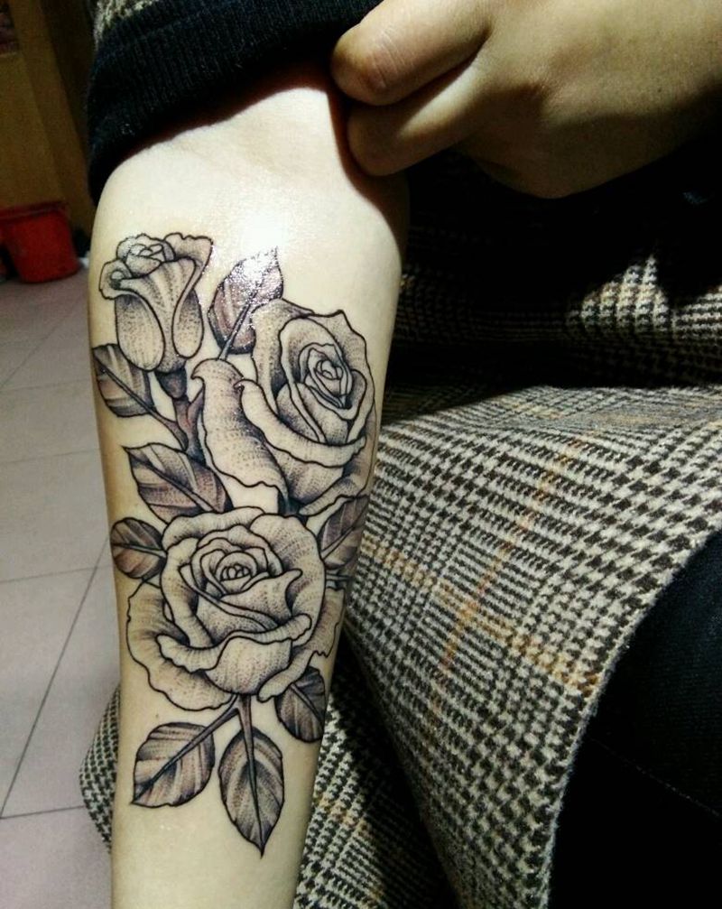 玫瑰纹身图片_手臂手部传统清新原创成品纹身图案