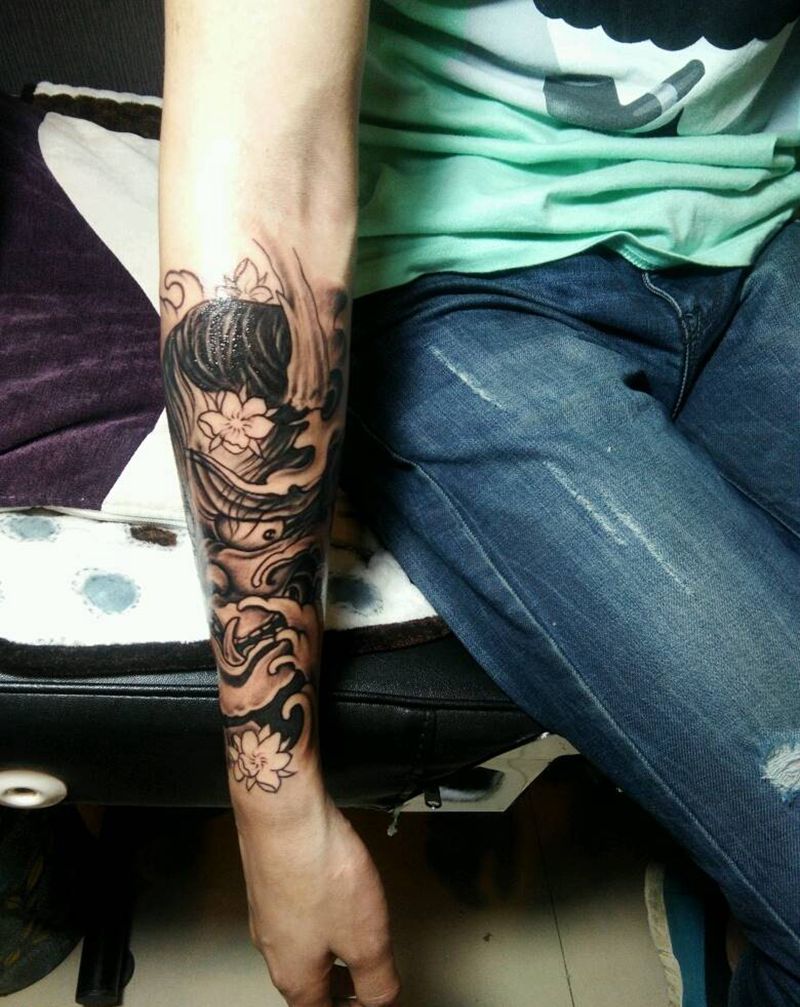 当前位置: 首页 >广东省广州市纹身店-东纹身纹身图案>般诺纹身图片_手臂传统鬼神原创成品纹身图案