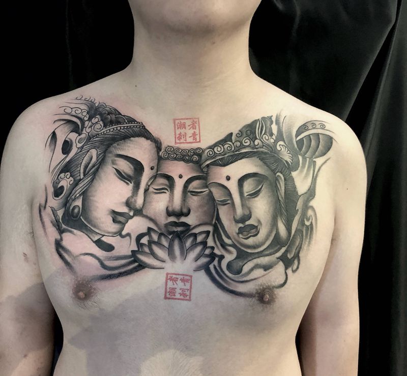 当前位置: 首页 >广东省广州市纹身店-丹刺青工作室纹身图案>三面佛纹身图片_胸部老传统纹身图案