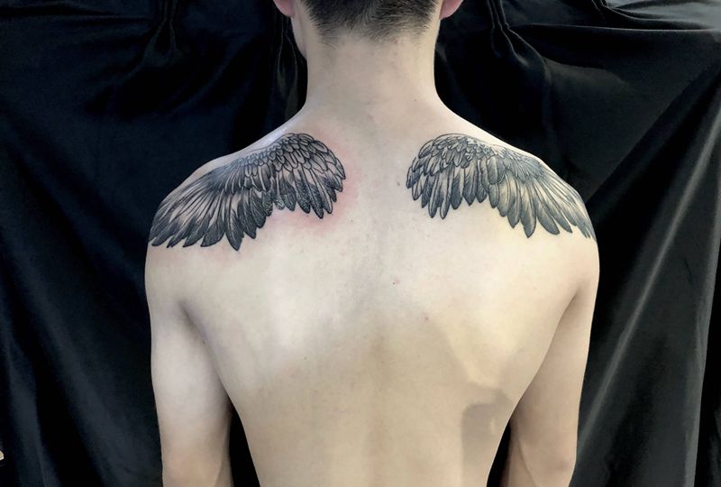当前位置: 首页 >广东省广州市纹身店-丹刺青工作室纹身图案>翅膀纹身图片_背部纹身图案