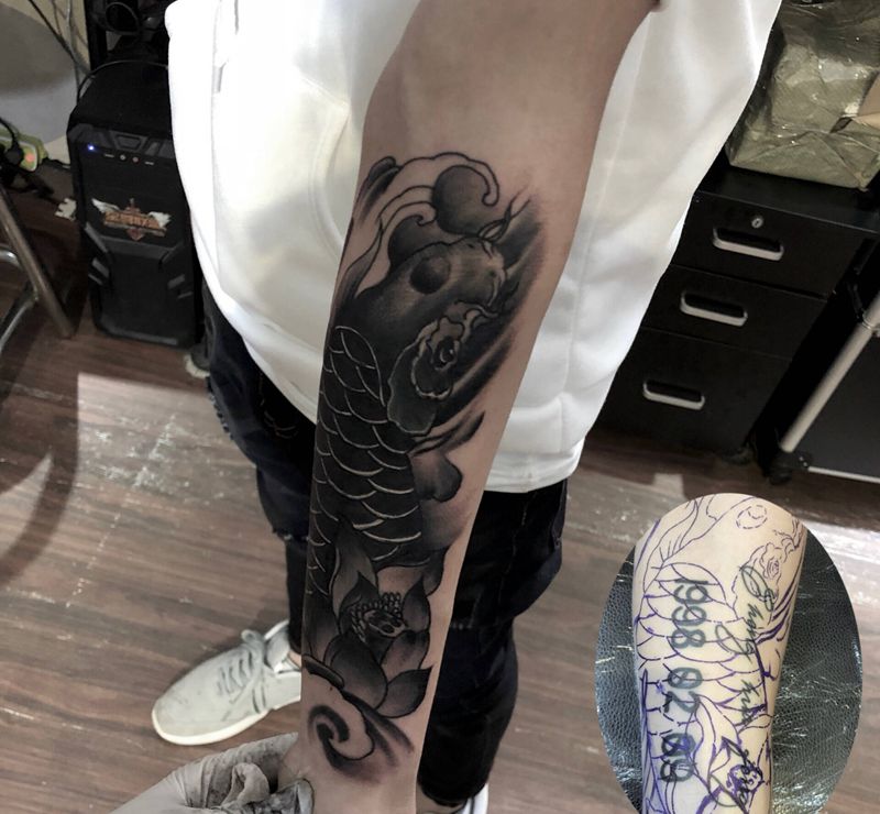 鲤鱼 遮盖纹身图片_手臂纹身图案