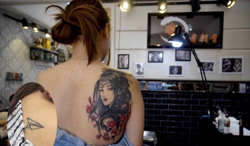 艺妓纹身图片_背部新传统纹身图案