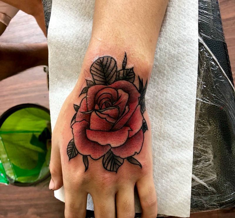 当前位置: 首页 >广东省广州市纹身店-丹刺青工作室纹身图案>花纹身图片_手部Old School纹身图案