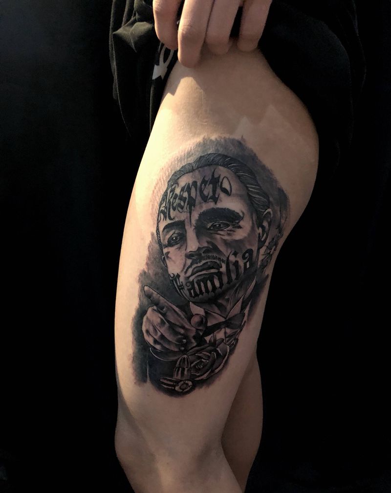 当前位置: 首页 >广东省广州市纹身店-丹刺青工作室纹身图案>教父纹身图片_腿部欧美写实纹身图案