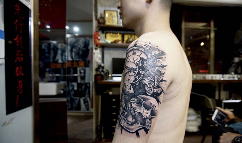当前位置: 首页 >广东省广州市纹身店-丹刺青工作室纹身图案>时钟纹身图片_手臂欧美写实纹身图案