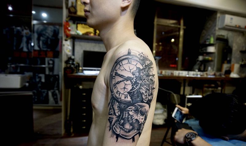 当前位置: 首页 >广东省广州市纹身店-丹刺青工作室纹身图案>时钟纹身图片_手臂欧美写实纹身图案