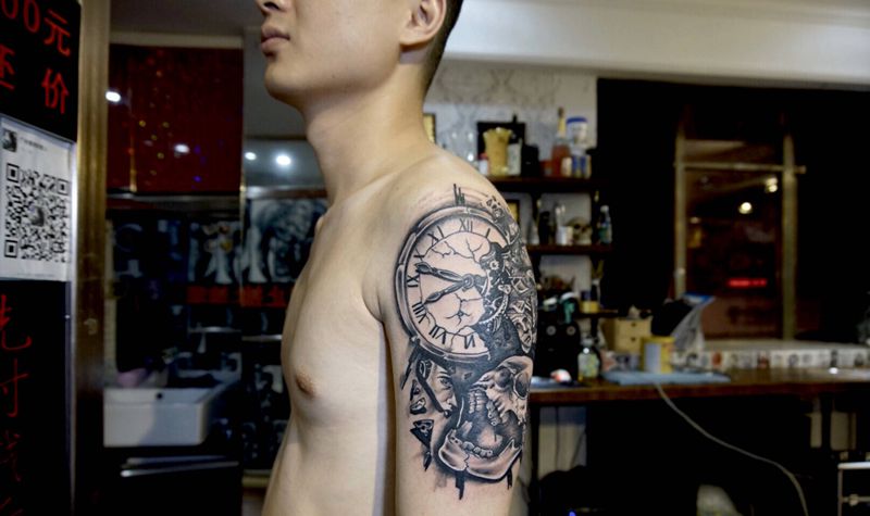 当前位置: 首页 >广东省广州市纹身店-丹刺青工作室纹身图案>时钟纹身图片_手臂欧美写实纹身图案