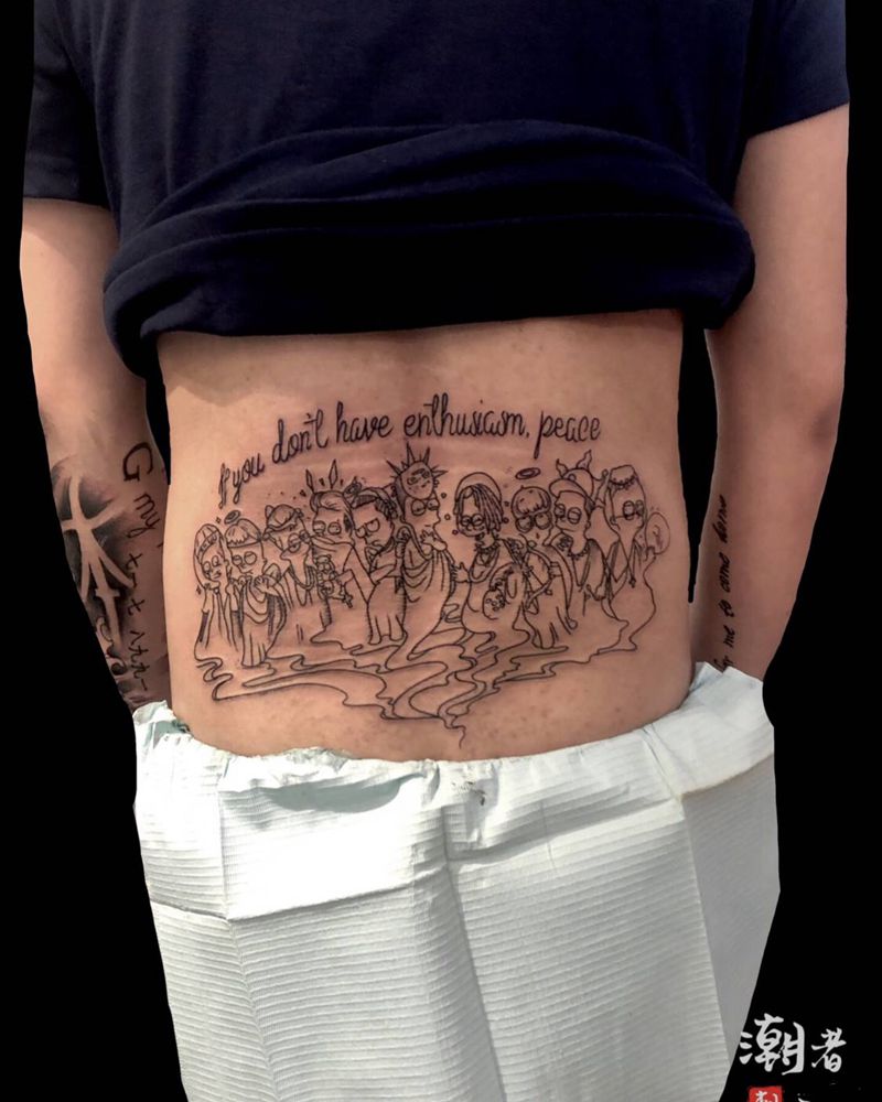 • T关于私处得爱!纹身图片_成品腹部清新字符图腾纹身图案