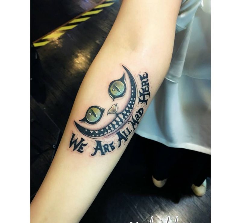 当前位置: 首页 >广东省广州市纹身店-栖宿刺青纹身图案>柴郡猫纹身图片_成品动物欧美清新手臂纹身图案