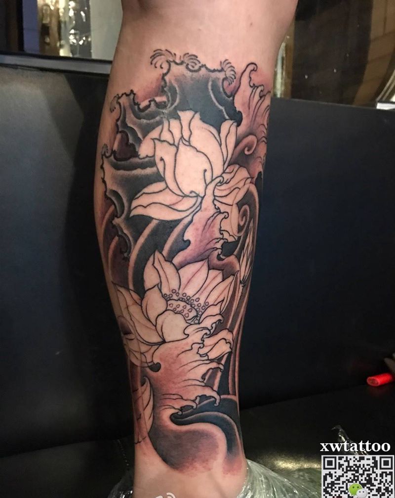 • T网红王老大花腿龙纹身图片_腿部新传统纹身图案