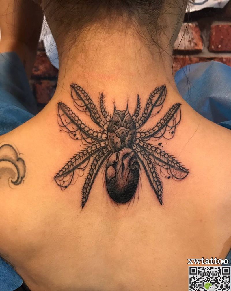蜘蛛纹身图片_成品颈部欧美纹身图案