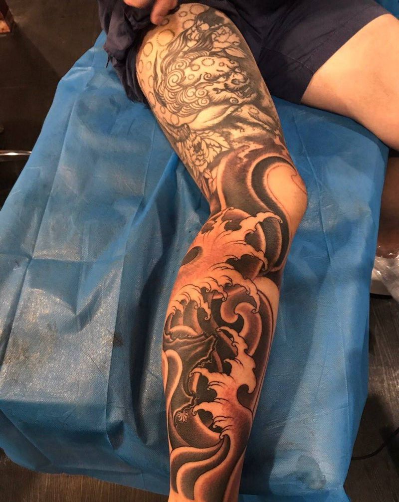 • T网红王老大花腿龙纹身图片_腿部新传统纹身图案