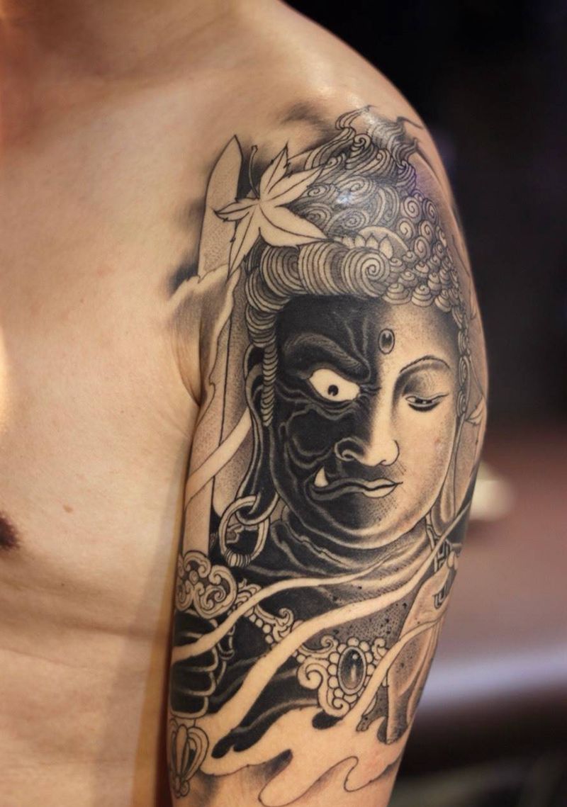 当前位置: 首页 >广东省广州市纹身店-栖宿刺青纹身图案>佛魔恢复后纹身图片_传统半佛半魔纹身图案