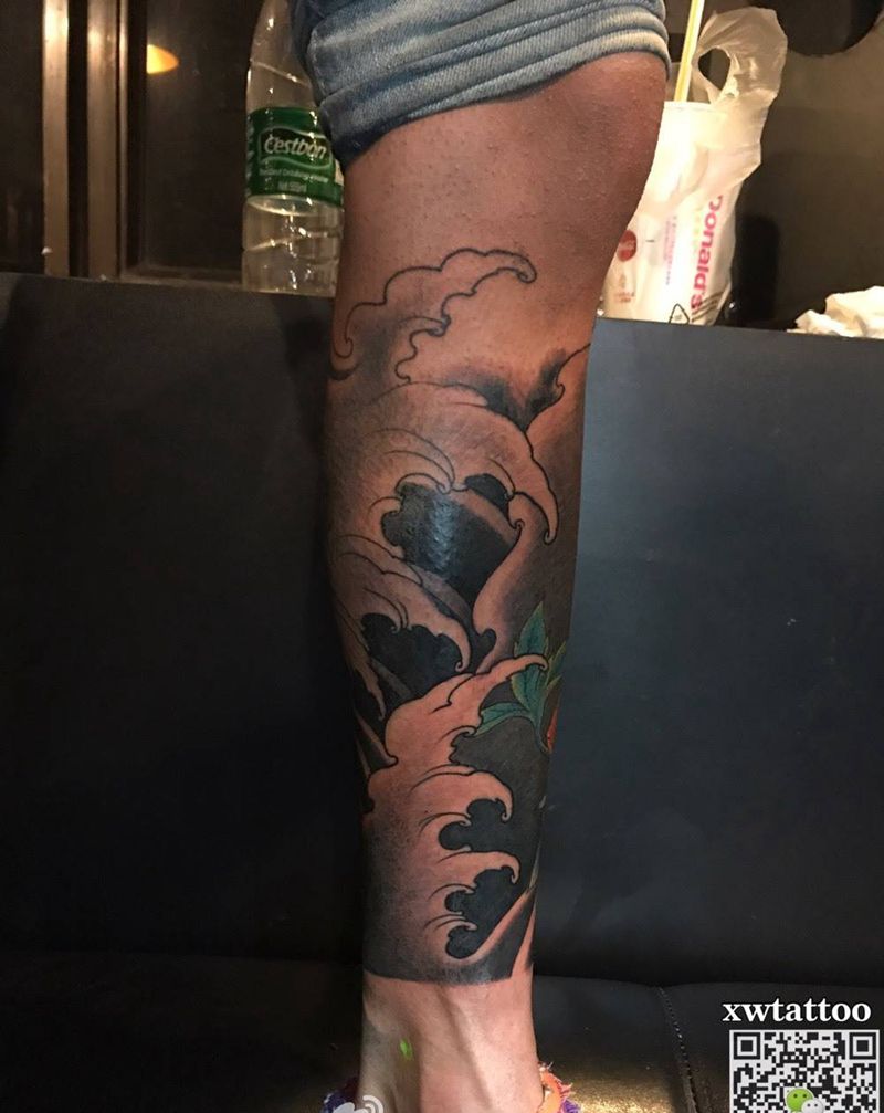 • T网红王老大花腿龙纹身图片_腿部新传统纹身图案