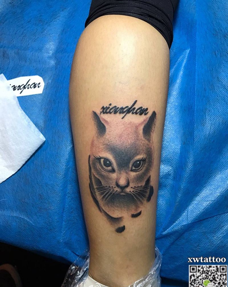 当前位置: 首页 >广东省广州市纹身店-栖宿刺青纹身图案>猫纹身图片_成品腿部欧美动物猫纹身图案