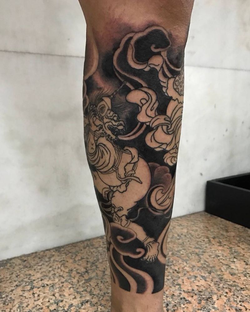 • T包小腿吹火男+阿多福纹身图片_腿部老传统新传统吹火男阿