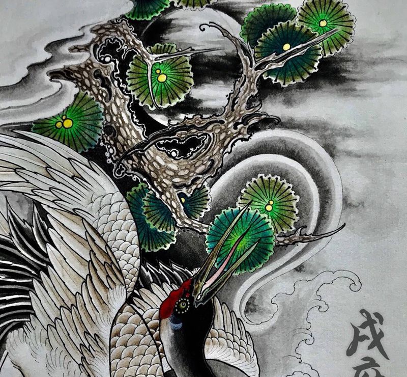 当前位置: 首页 >广东省广州市纹身店-栖宿刺青纹身图案>松鹤纹身图片_手稿传统花臂鹤松树纹身图案