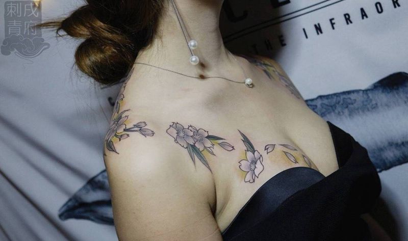 • 女性大花胸纹身_43张霸气漂亮的女性大花胸纹身图案作品
