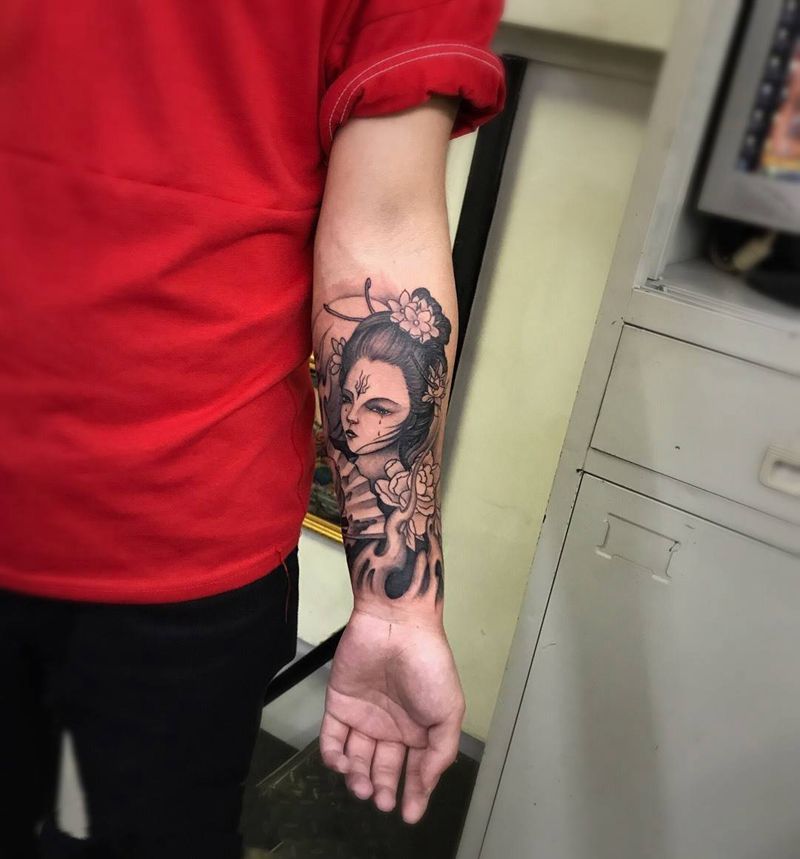 当前位置: 首页 >广东省广州市纹身店-广州王朝刺青纹身图案>艺妓纹身图片_成品手臂传统清新人物艺妓纹身图案