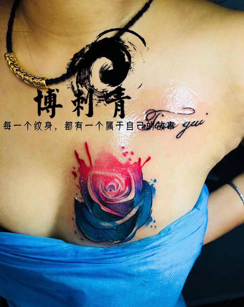 • 女性大花胸纹身_43张霸气漂亮的女性大花胸纹身图案作品
