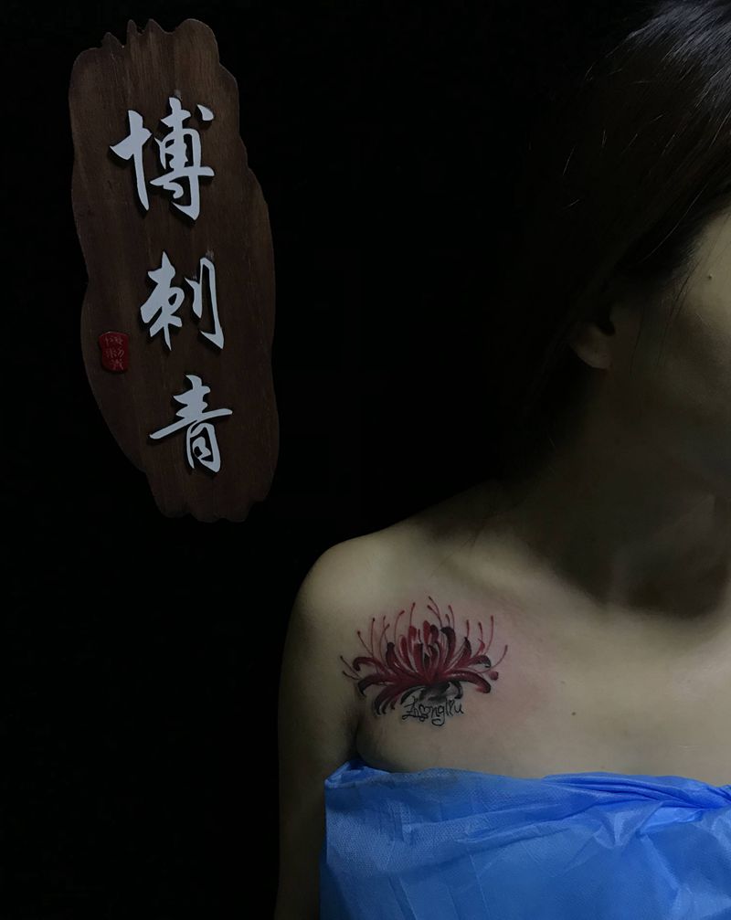 当前位置: 首页 >广东省广州市纹身店-博刺青纹身图案>彼岸纹身图片_肩部胸部纹身图案