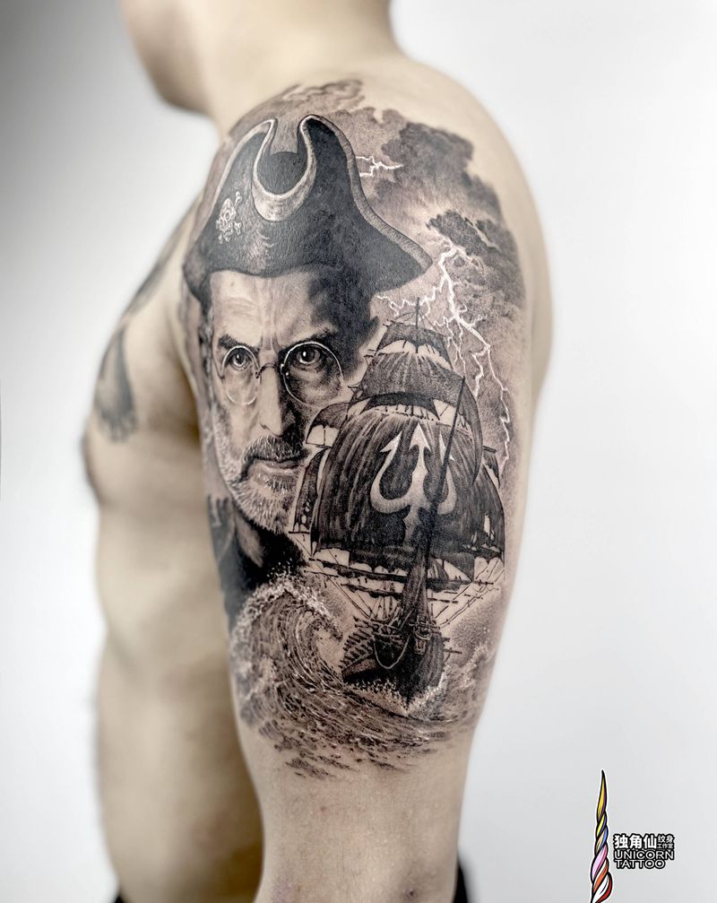 当前位置: 首页 >广东省广州市纹身店-广州独角仙纹身工作室纹身图案>☠“海盗”乔布斯