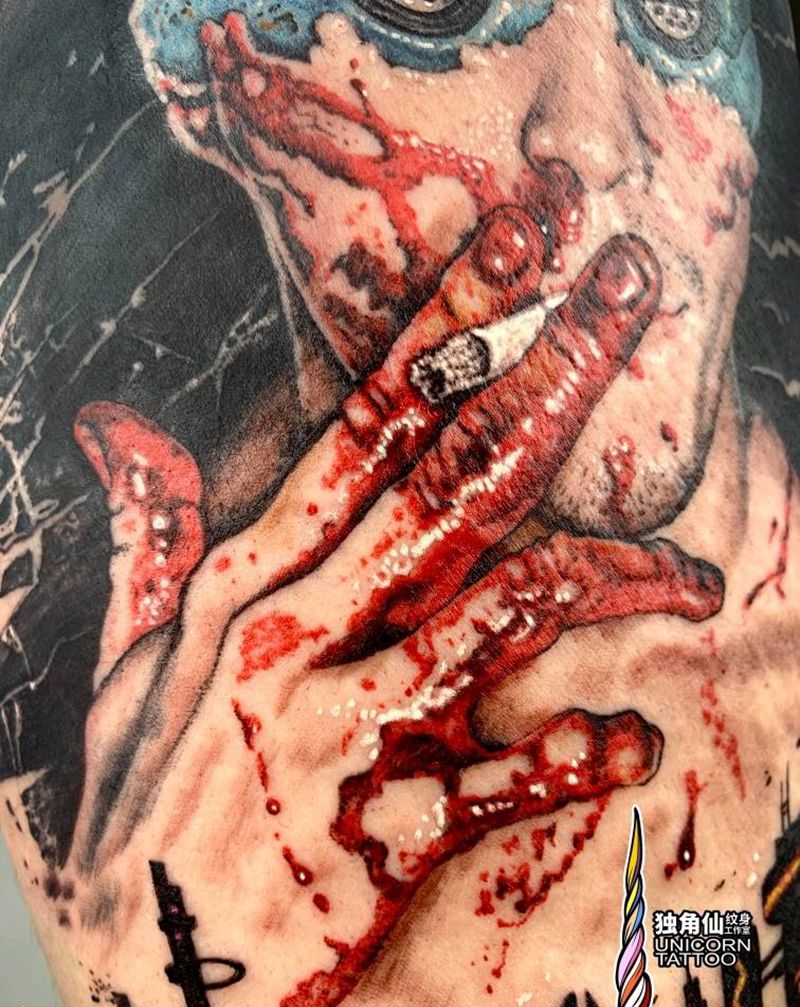 血烟碎片纹身图片_腿部欧美写实原创彩色写实原创设计纹身图案