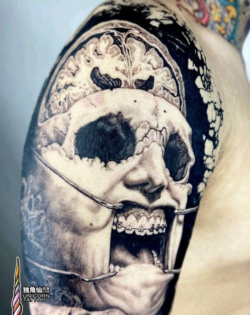 当前位置: 首页 >广东省广州市纹身店-广州独角仙纹身工作室纹身图案>哥特-暴力优雅纹身图片_手臂欧美写实原创暗黑黑灰纹身图案