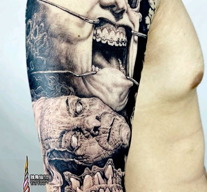 当前位置: 首页 >广东省广州市纹身店-广州独角仙纹身工作室纹身图案>哥特-暴力优雅纹身图片_手臂欧美写实原创暗黑黑灰纹身图案