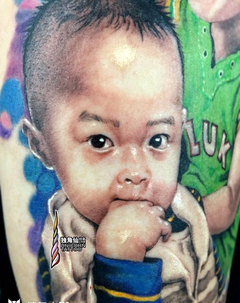 当前位置: 首页 >广东省广州市纹身店-广州独角仙纹身工作室纹身图案>肖像-姐姐&弟弟纹身图片_肩部手臂欧美写实原创彩色肖像纹身图案
