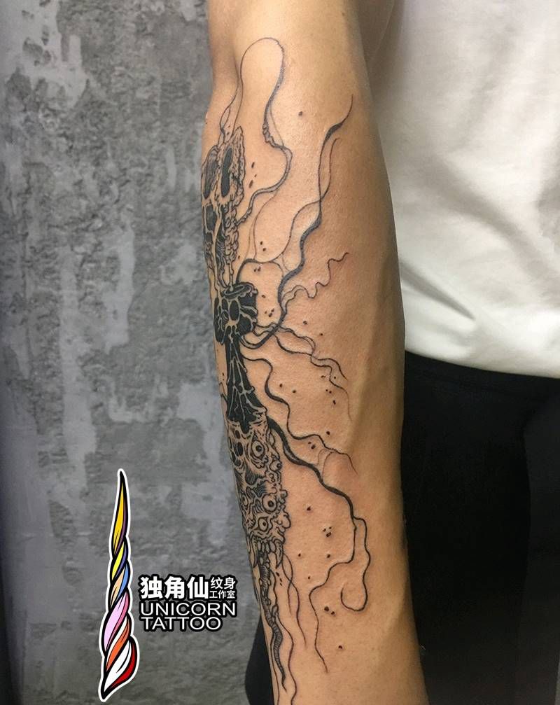 当前位置: 首页 >广东省广州市纹身店-广州独角仙纹身工作室纹身图案>邪恶版纹身机纹身图片_手臂线条纹身图案