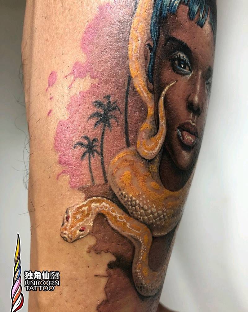 当前位置: 首页 >广东省广州市纹身店-广州独角仙纹身工作室纹身图案>黑珍珠与黄金球蟒纹身图片_腿部欧美写实彩色写实纹身图案