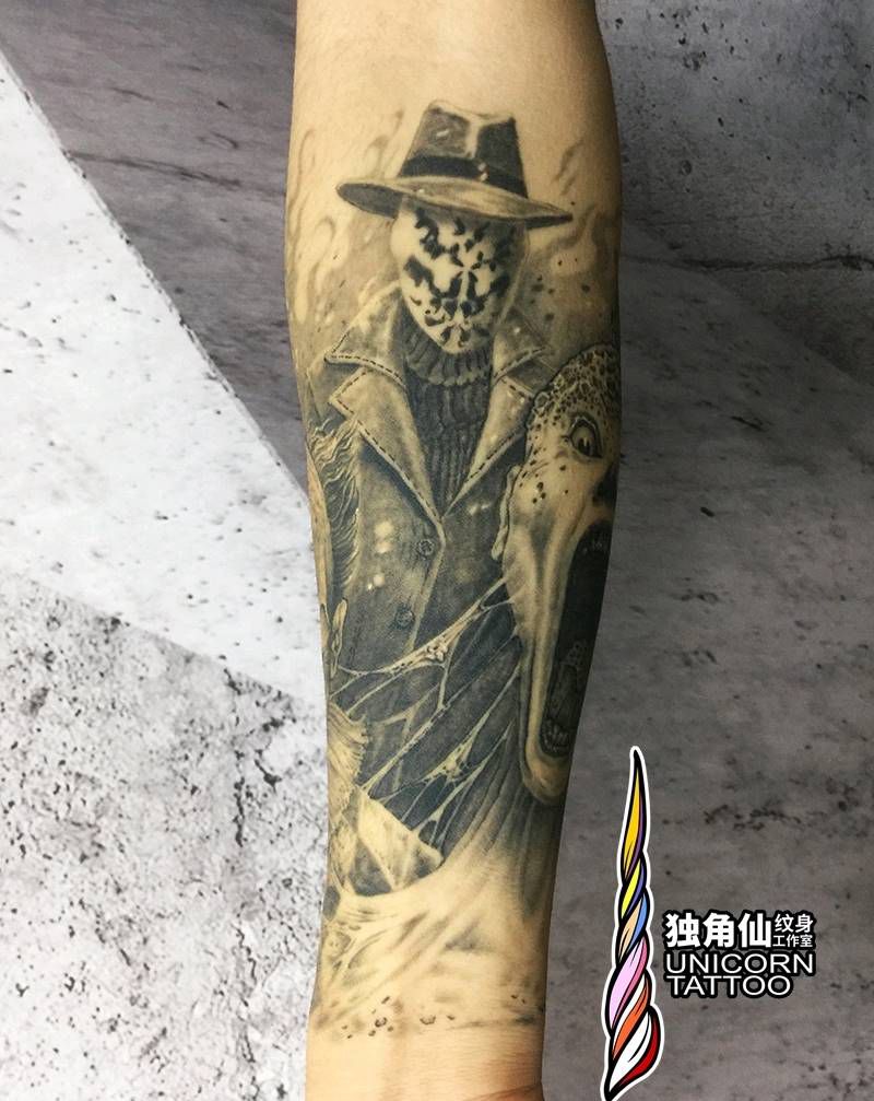 当前位置: 首页 >广东省广州市纹身店-广州独角仙纹身工作室纹身图案>惊悚主题花臂纹身图片_手臂欧美写实纹身图案