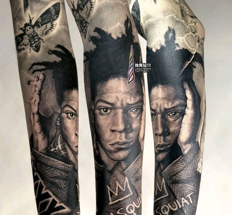 巴斯奎特纹身图片_手臂欧美写实黑灰写实原创设计纹身图案