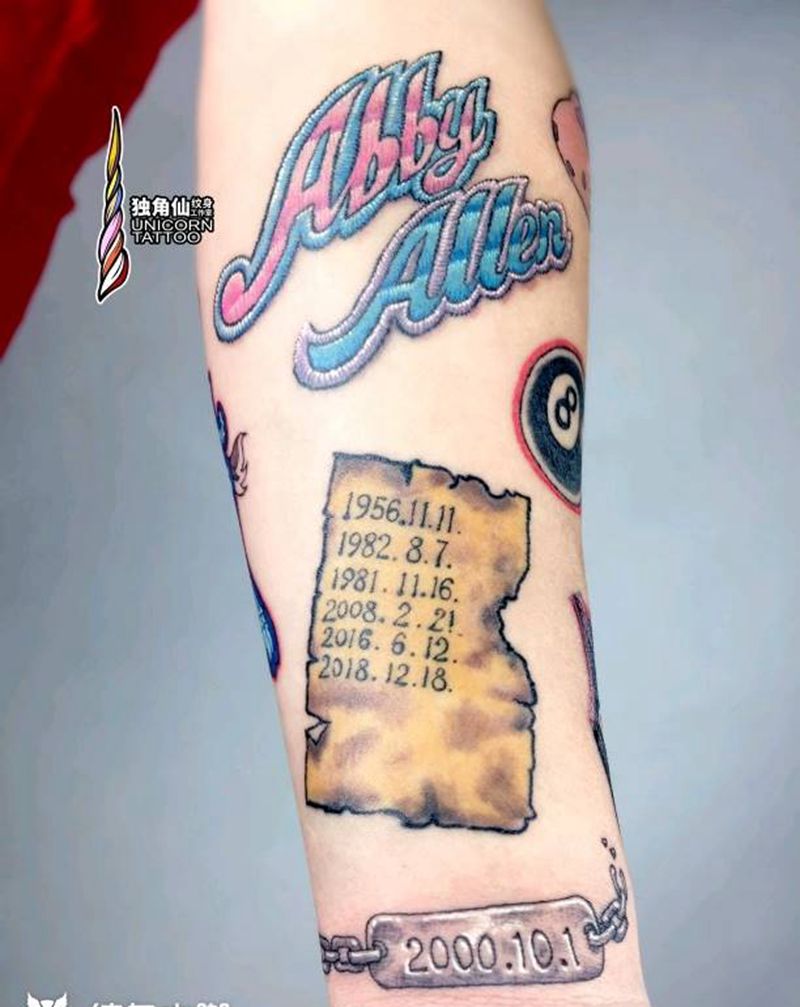 • T家庭图,一家四口生日纪念!纹身图片_手臂纹身图案
