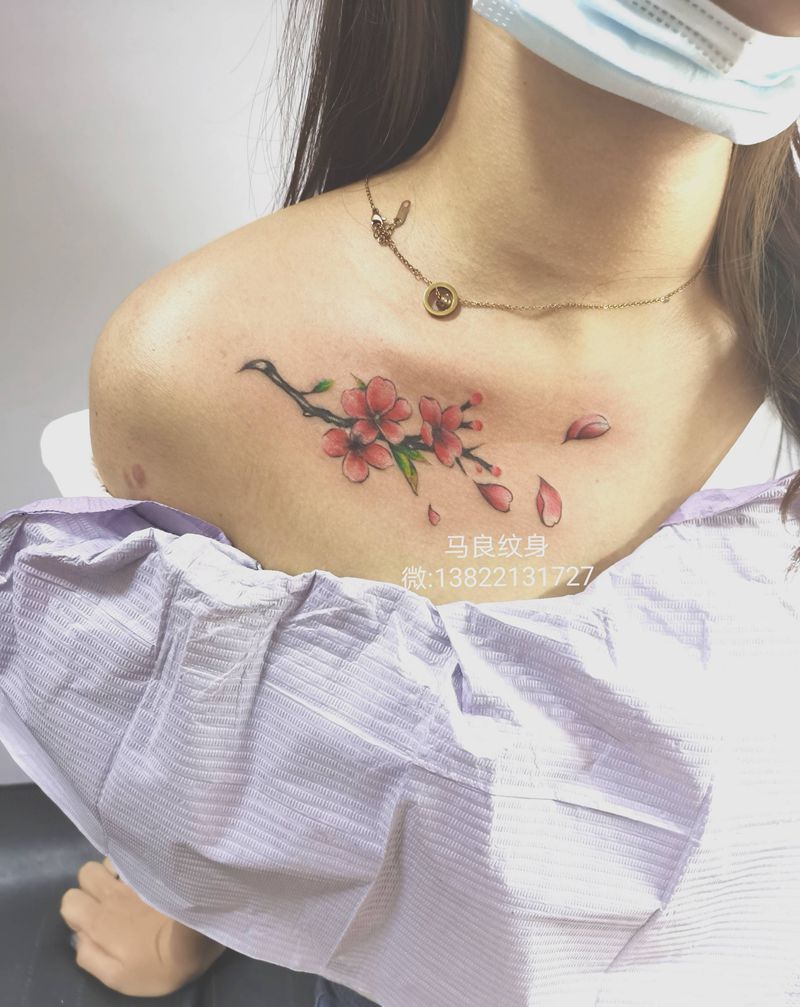 遮盖疤痕纹身图片_胸部新传统纹身图案