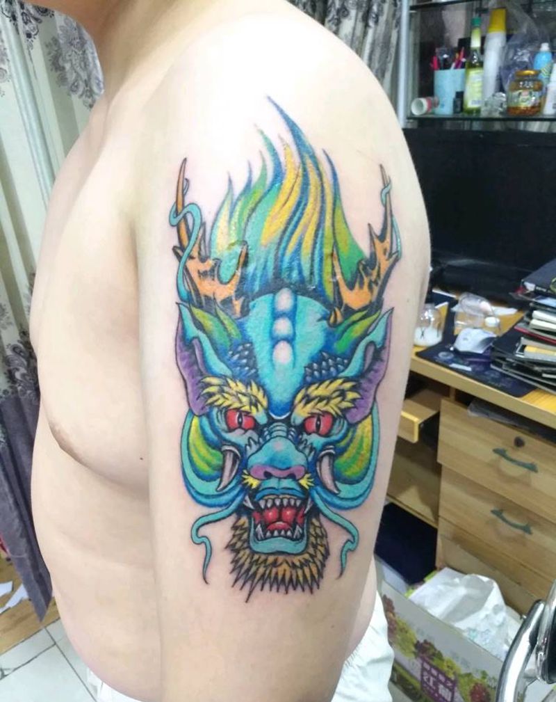 当前位置: 首页 >广东省广州市纹身店-马良刺青纹身图案>七彩龙头纹身图片