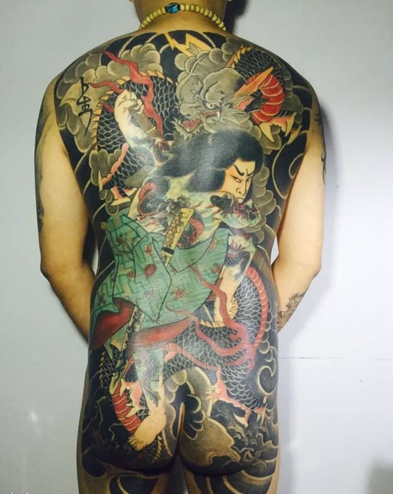 当前位置: 首页 >广东省广州市纹身店-肆海刺青纹身图案>日式传统九纹龙史进纹身图片_成品腰部背部臀部传统人物鬼神纹身图案