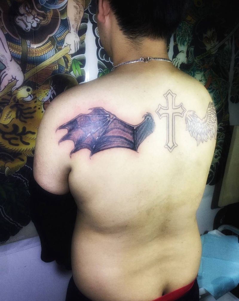 • 纹身吧推荐的披肩图腾半胛纹身图案作品展示
