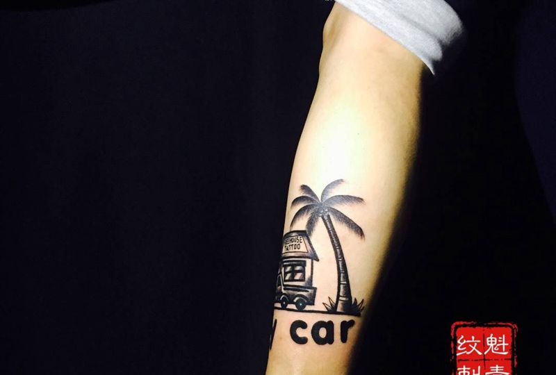 当前位置: 首页 >广东省广州市纹身店-肆海刺青纹身图案>椰子树加房车纹身图片
