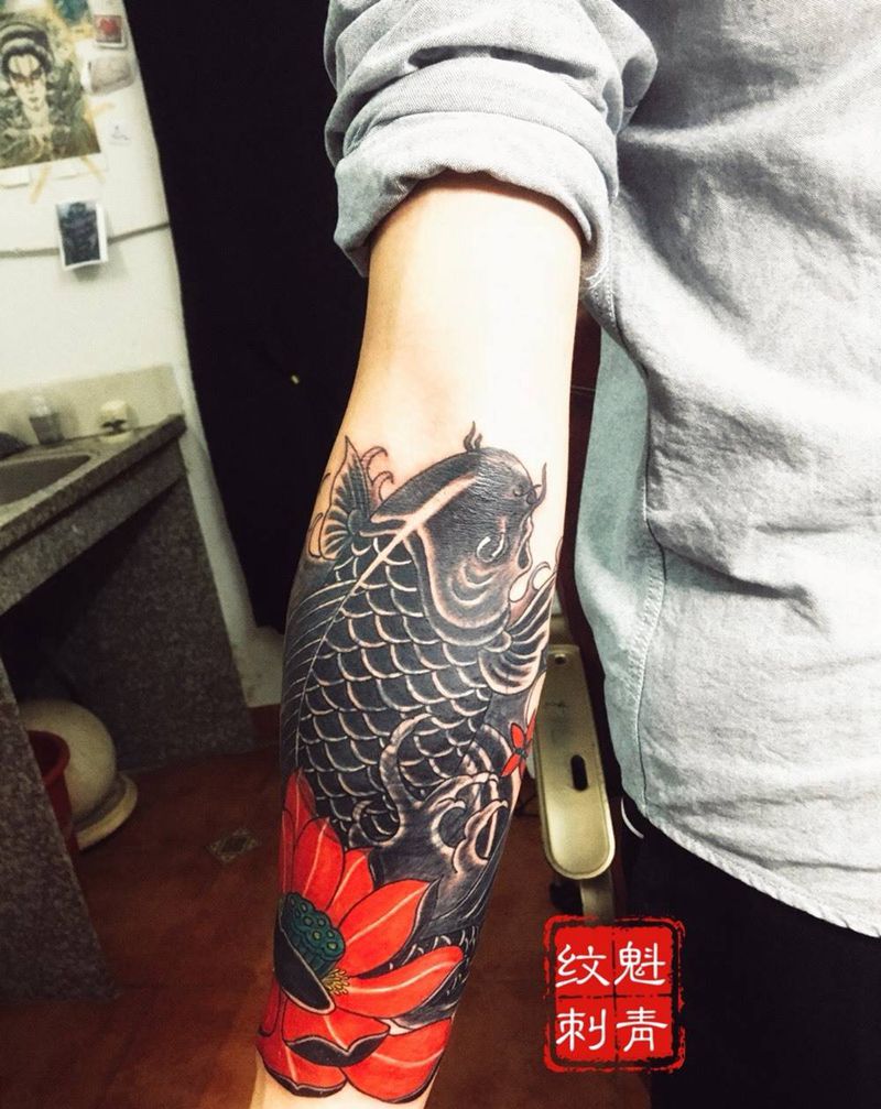 鲤鱼遮盖作品纹身图片_传统原创动物手臂成品纹身图案