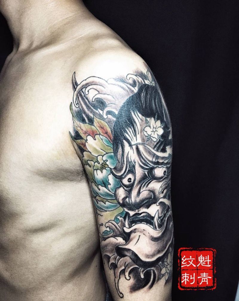 班若纹身图片_成品手臂传统人物鬼神宗教纹身图案