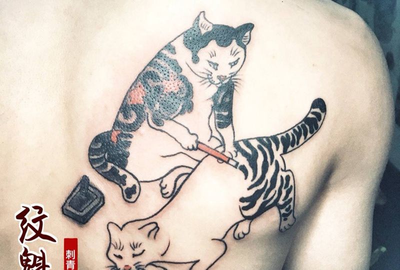 当前位置: 首页 >广东省广州市纹身店-肆海刺青纹身图案>日式猫纹身图片_成品背部传统动物纹身图案
