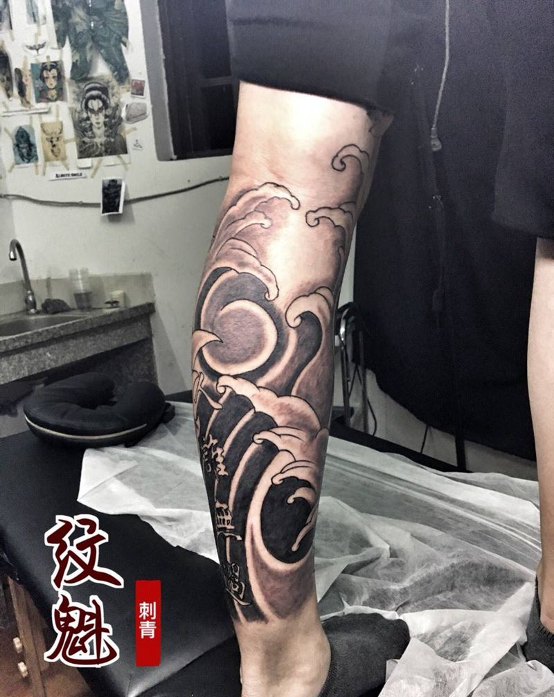 当前位置: 首页 >广东省广州市纹身店-肆海刺青纹身图案>浪花牡丹包小腿纹身图片_成品腿部传统原创植物纹身图案