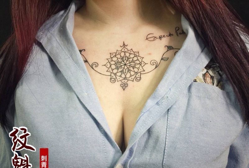 梵花,英文纹身图片_成品字符几何原创肩部胸部纹身图案