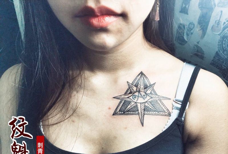 当前位置: 首页 >广东省广州市纹身店-肆海刺青纹身图案>添加眼睛纹身纹身图片_成品颈部清新几何字符纹身图案