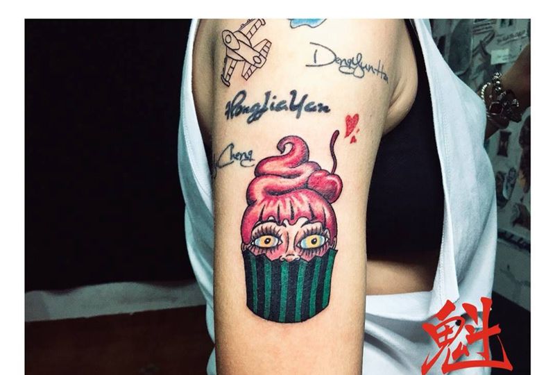 当前位置: 首页 >广东省广州市纹身店-肆海刺青纹身图案>小蛋糕纹身图片_成品手臂欧美人物纹身图案
